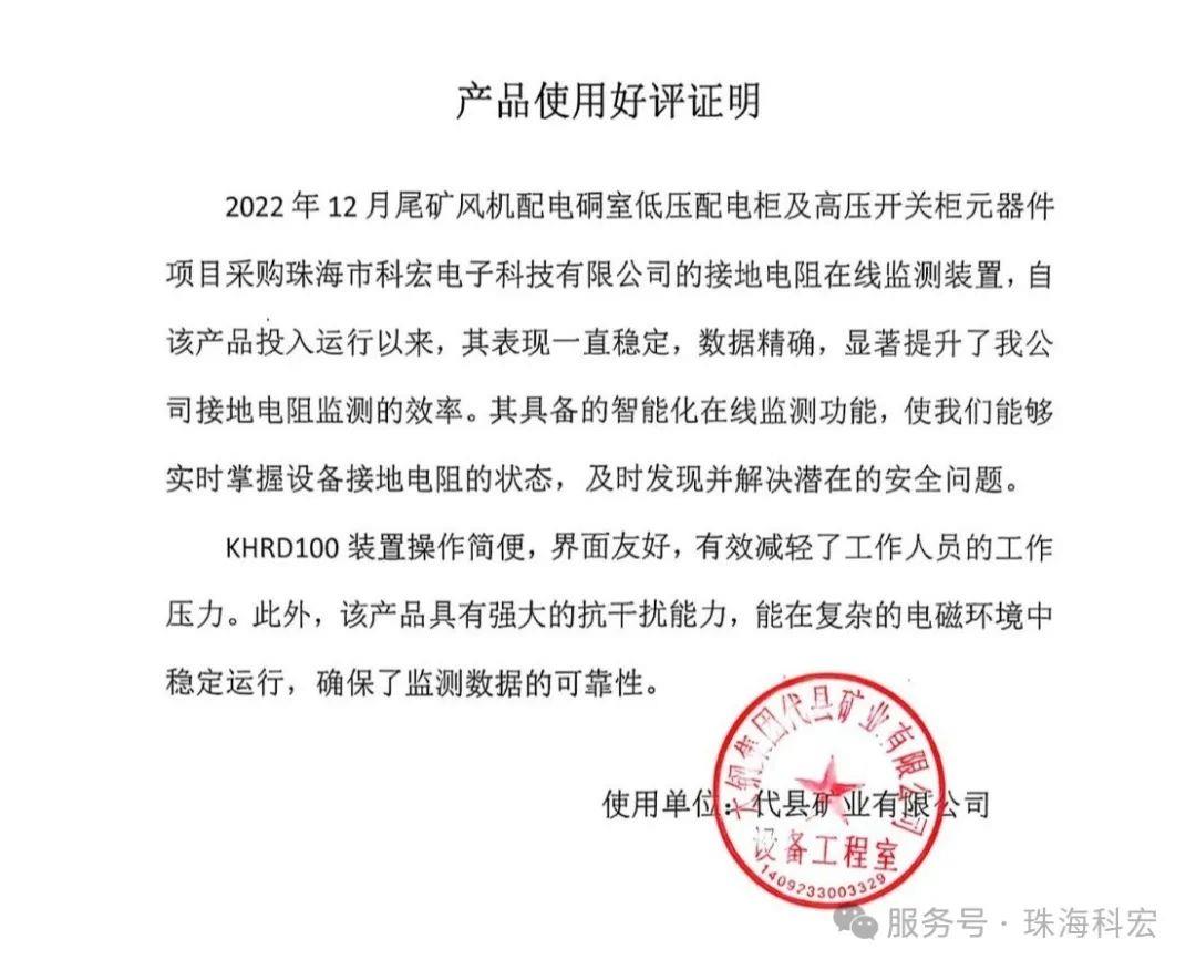 近日,太钢集团代县矿业对我司的接地电阻在线监测TIKTOK色板免费下载给予了高度评价,这一反馈无疑是对TIKTOK色板免费下载入口产品性能和服务质量的有力肯定。